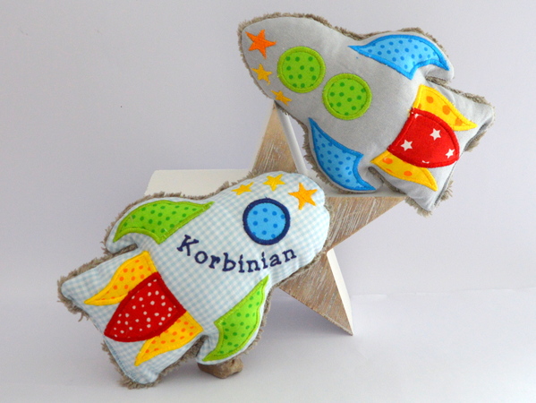 Süße Stickdatei, kleine Rakete für Kinderhände. Die Rakete wird komplett im Rahmen von der Stickmaschine gestickt, es muss lediglich die Wendeöffnung von Hand geschlossen werden!