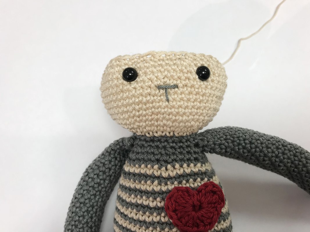 3 x Baumwollgarn, 1 Häkelnadel, 1 Paar Sicherheitsaugen, Füllwatte, Nadel, Schere