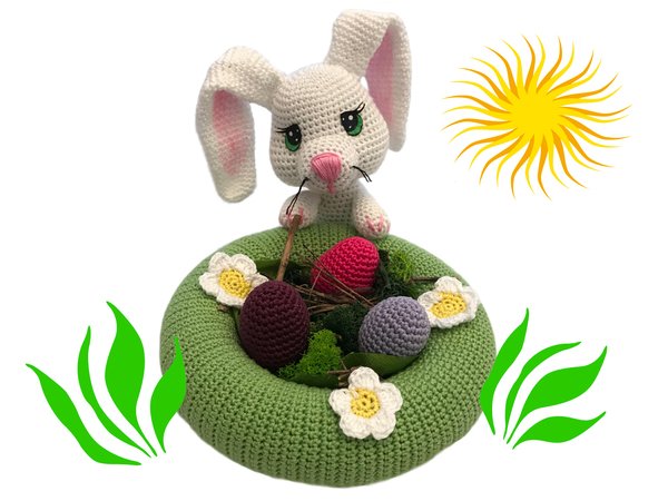 "Neugieriges Osterhäschen" mit Eierkörbchen incl. BONUSANLEITUNG