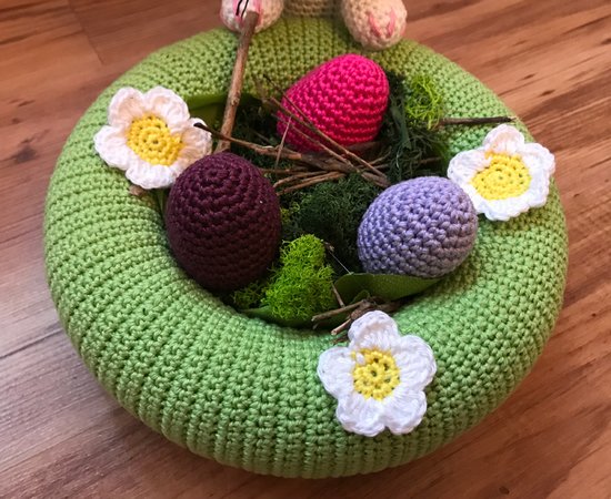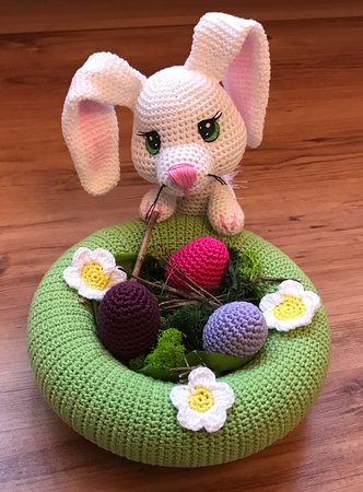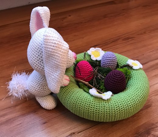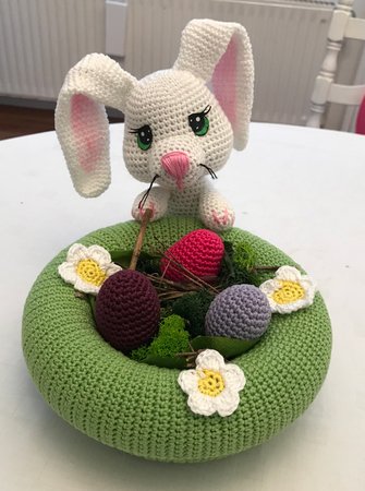 Natürlich müsst Ihr kein Osterkörbchen häkeln, das Häschen kann auch an jedes beliebige Osterkörbchen gestellt werden. Es schaut einfach überall und gerne - neugierig rein ;)