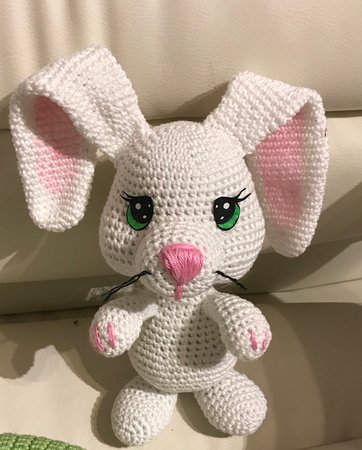 Das Häschen wird je nach Wolle und Nadelstärke 15 - 20 cm groß.