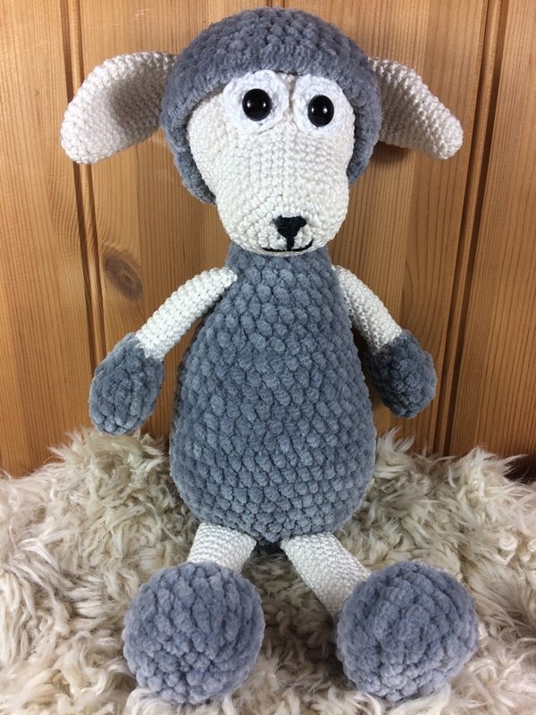 Das Schaf ist wunderbar zum Kuscheln, für einsame Nächte oder ihr lasst seine Beine einfach baumeln als Kantenhocker.