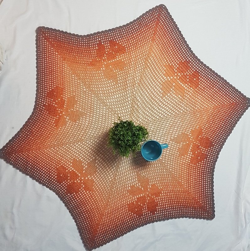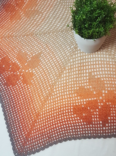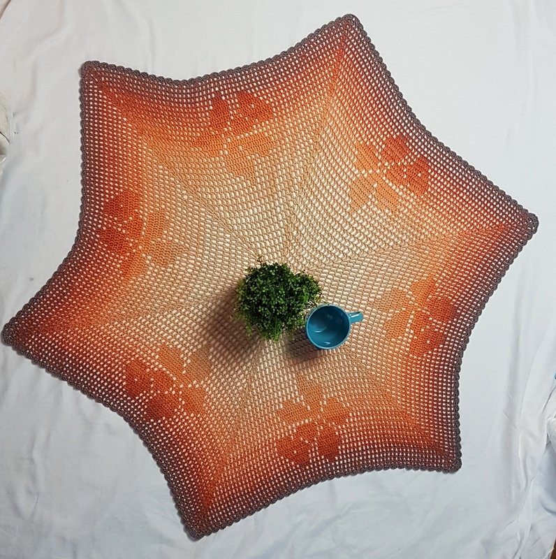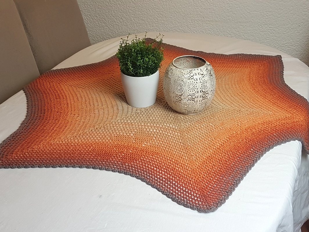 Die Tischdecke wird in Runden gehäkelt und hat 6 Ecken. Sechs Narzissenblüten gehen reihum. Die 15-seitige Anleitung beinhaltet eine Fotostrecke zum Filethäkeln, eine Fotostrecke für den Anfang und eine weitere Fotostrecke zu der Abschlusskante. Anhand der 3 Häkelschriften könnt Ihr die einzelnen Arbeitsschritte noch einmal verfolgen. Eine extra Zeichnung zu dem Filet-Muster rundet die Anleitung ab. Die Tischdecke hat einen Durchmesser (Ecke Zu Ecke) von ca. 110cm.
