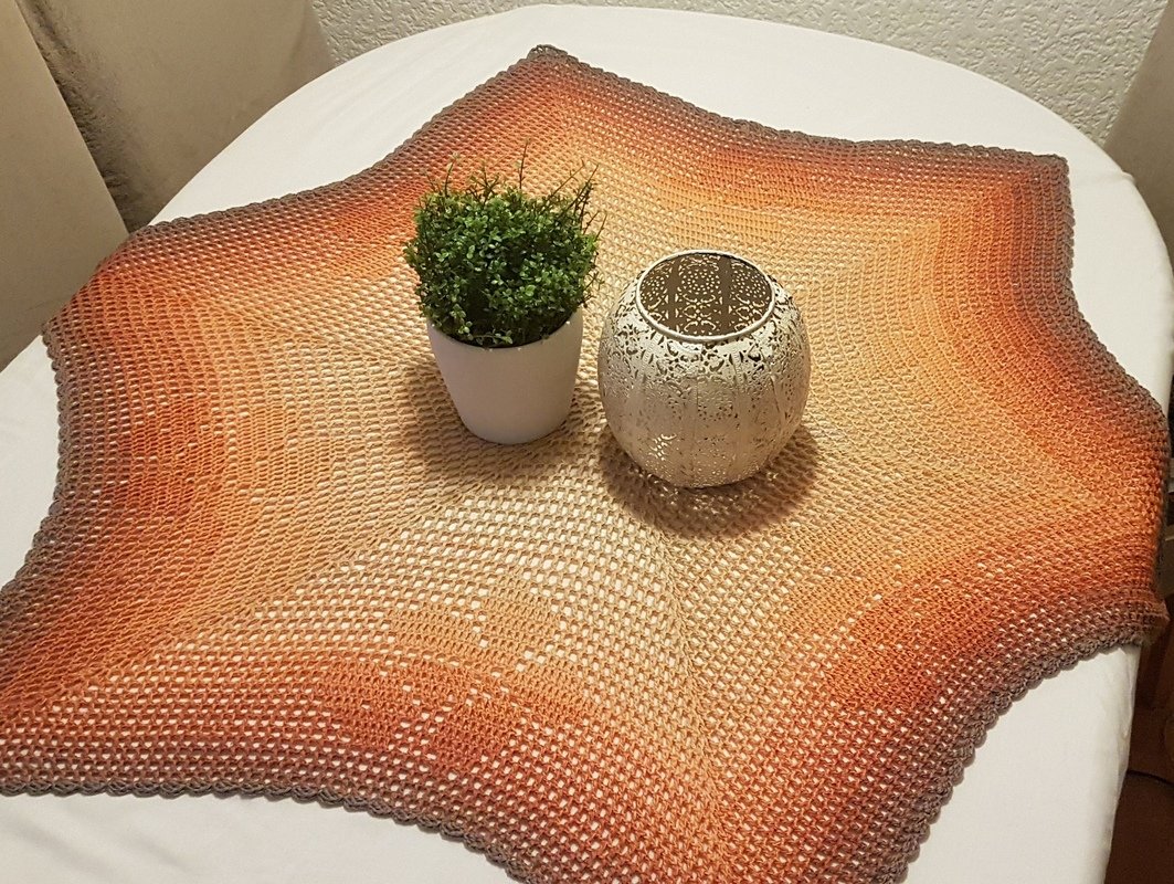 Die Tischdecke hat einen Durchmesser (Ecke Zu Ecke) von ca. 110cm.