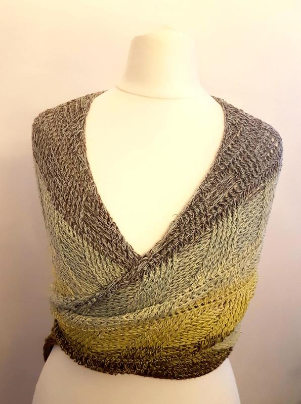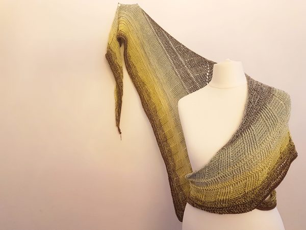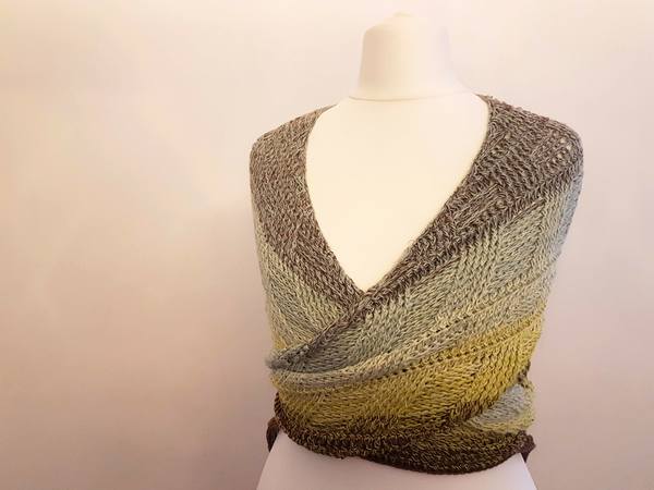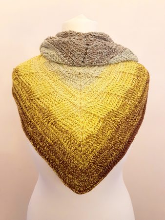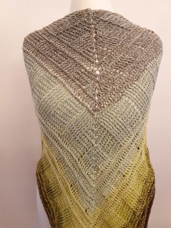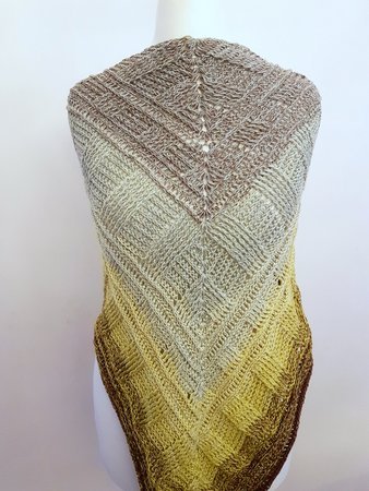 Etwa 1400 m 4-fach gefachtes Garn habe ich für dieses Tuch benötigt.