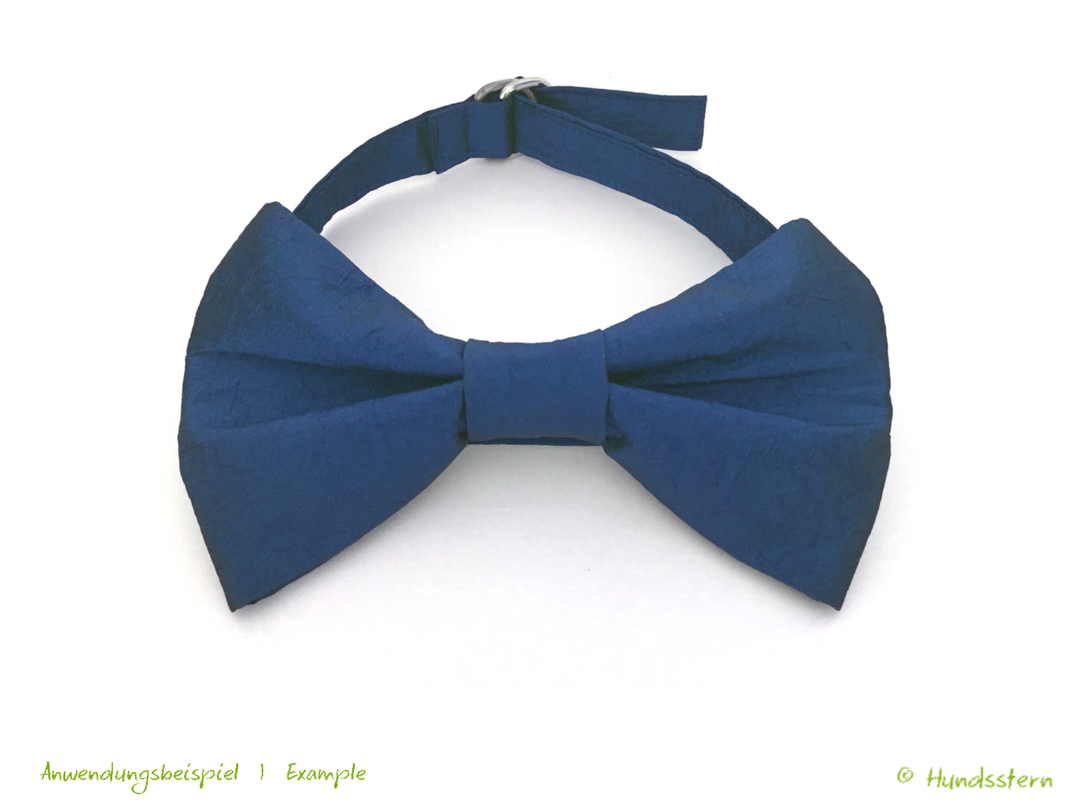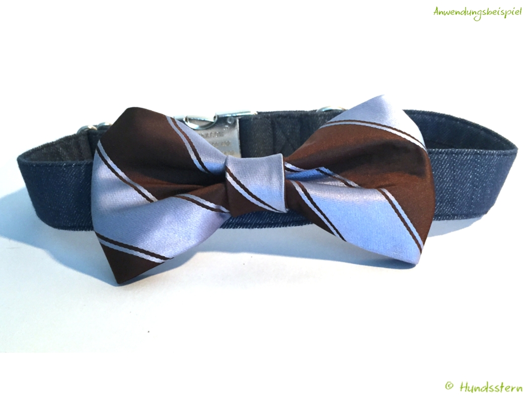 Für das Festtags-Outfit eines stattlichen Rüden. Die Fliege wird mit 2 Gummibändern auf das Halsband aufgezogen und kann genauso leicht wieder abgenommen werden.