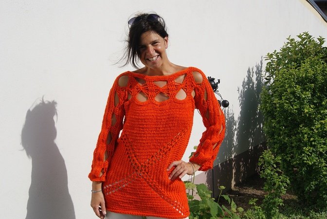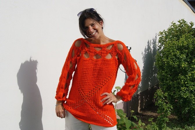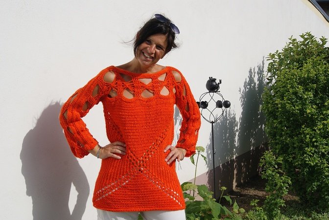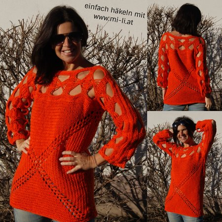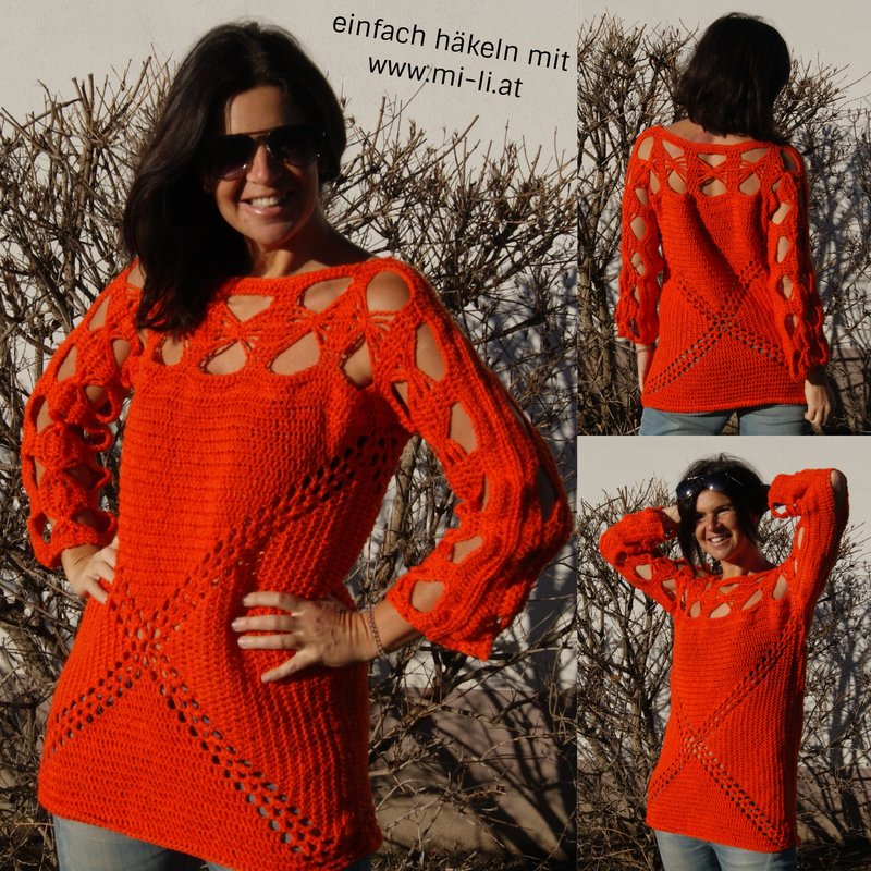 Wunderschöner Häkelpulli mit raffinierten Details, zum Wohlfühlen für alle Jahreszeiten – und ganz leicht zum Anpassen für alle Größen!