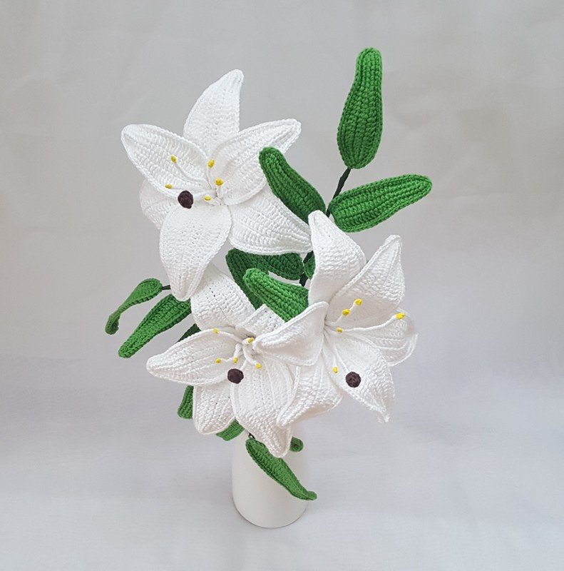 Bedenke dabei aber das deine Lilie bei einer größeren Häkelnadel dementsprechend auch Größer wird.