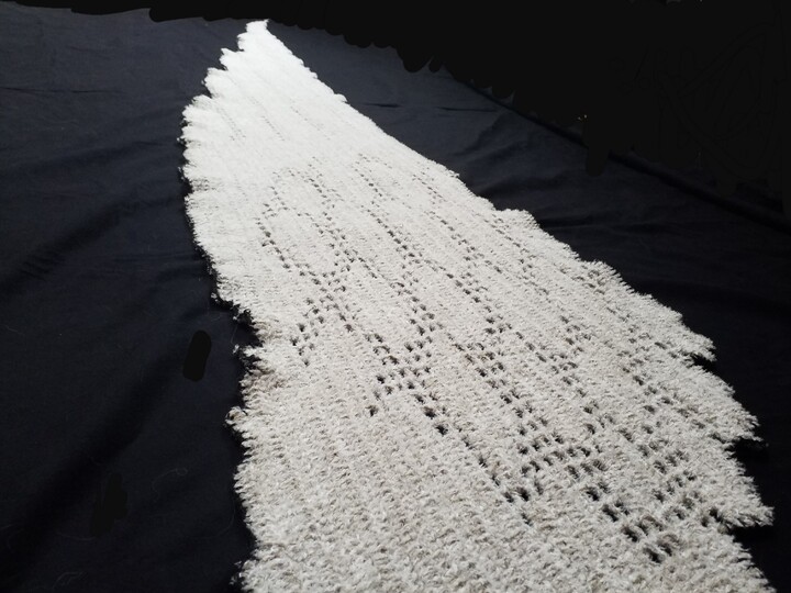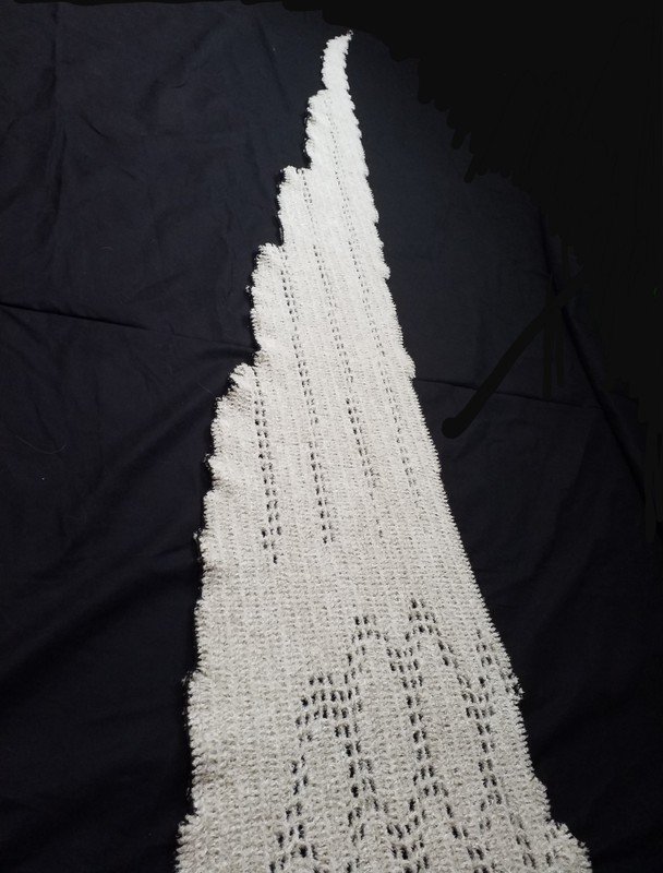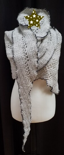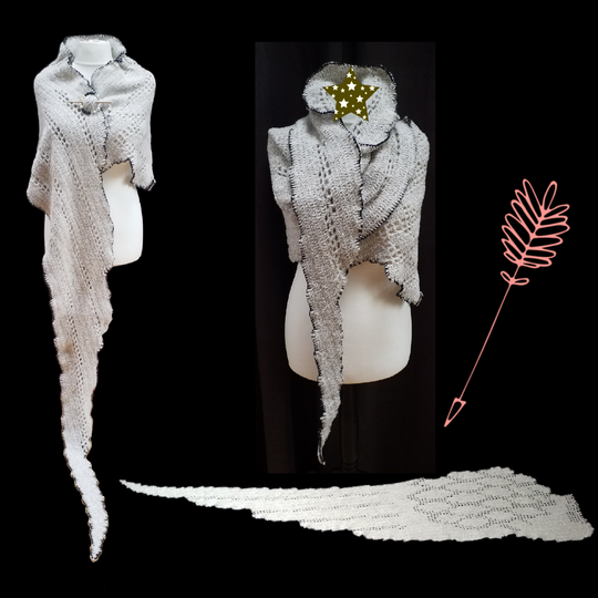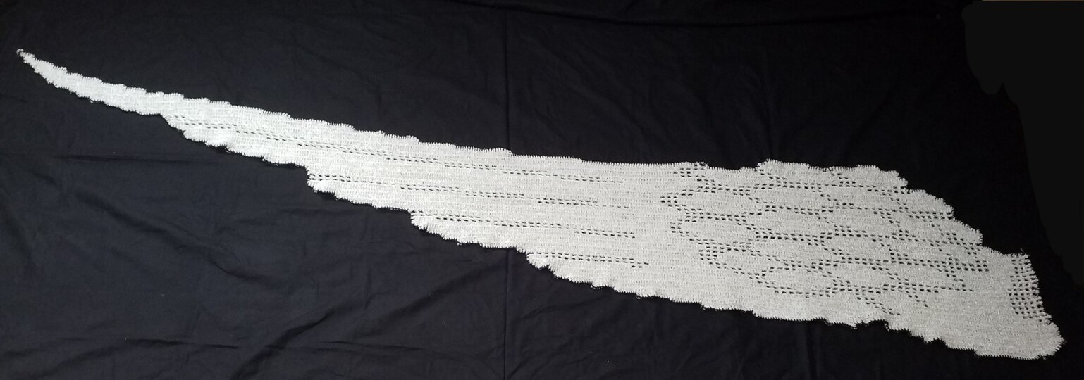 Verbraucht habe ich bei einem Flügel ca. 500g, 6 fädiges Garn.