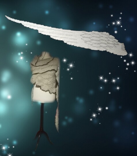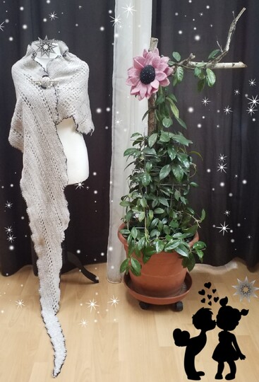 Dieses tolle Engelflügel Tuch kann man einzeln, "siehe Titelbild" oder auch mit 2 Flügel als Partnertuch getragen werden. Zbs. ein Liebespaar auf einer Bank, die sich zusammen etwas in die Flügel einkuscheln.