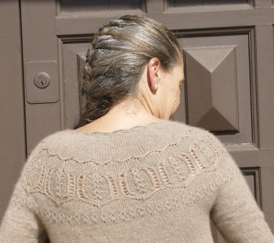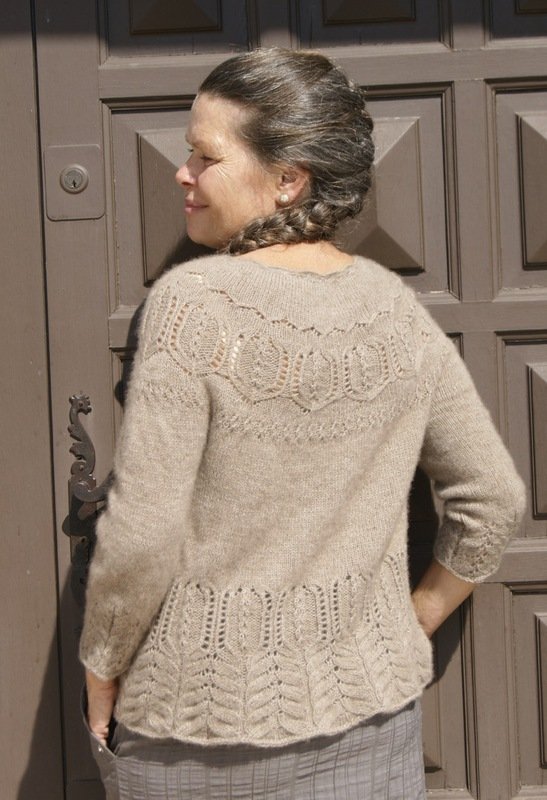 Der Relaxis Pullover wird in Runden nahtlos von oben gestrickt, den etwas tieferen (vorderen) Halsausschnitt formen verkürzte Reihen. Der Pullover (Originalmodell) wird gerade gestrickt und wirkt durch die Zunahmen im Body - Lacemuster tailliert. Die Anleitung enthält auch eine A- Linien - Version. Bitte beachten, dass sich dafür der Materialverbrauch um mindestens 40 g erhöht. Der Pullover ist mit 3-4 cm Mehrweite entworfen und im Schulterbereich anliegend.