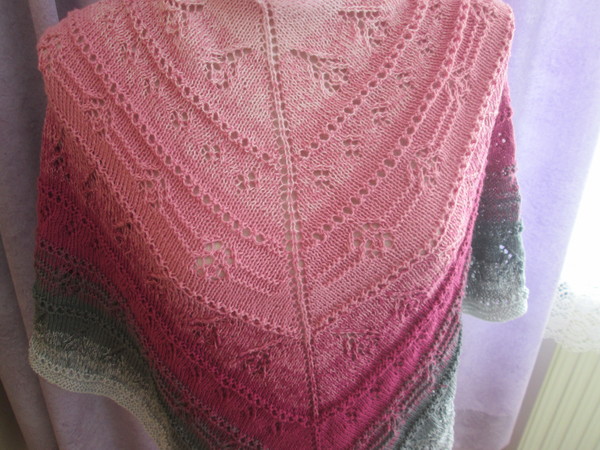 „Deep Love Rose„ ist ein Tuch bei dem man nicht so aufmerksam sein muss,es lässt sich gut nebenbei stricken.