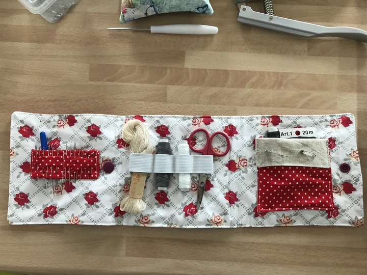 Dient zur Aufbewahrung von Nadel u. Faden nebst kleiner Schere oder Nahttrenner u. nimmt auf Reisen nicht viel Platz weg.