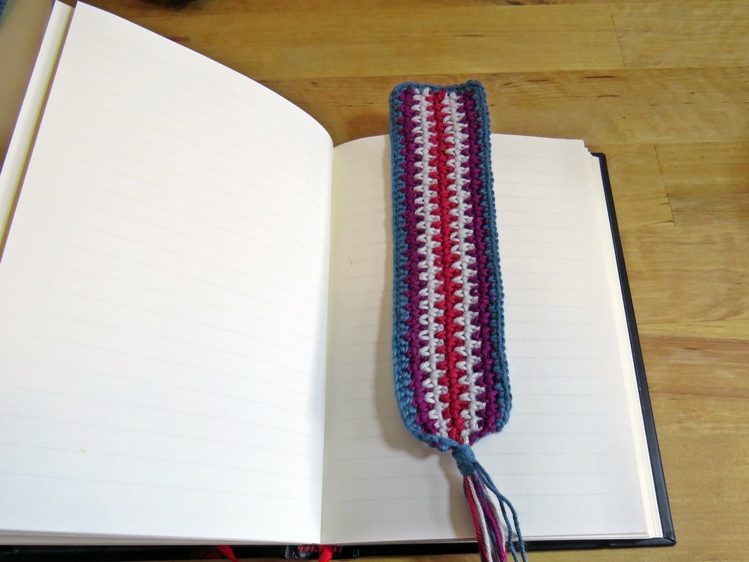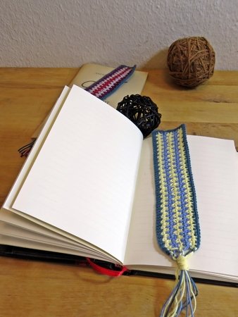 Das fertige Lesezeichen ist 17 cm lang, das kannst du aber schon beim Maschenanschlag für dich selber abändern. Auch die Länge der Fransen bestimmst du selber, zwischen 5 und 10 cm