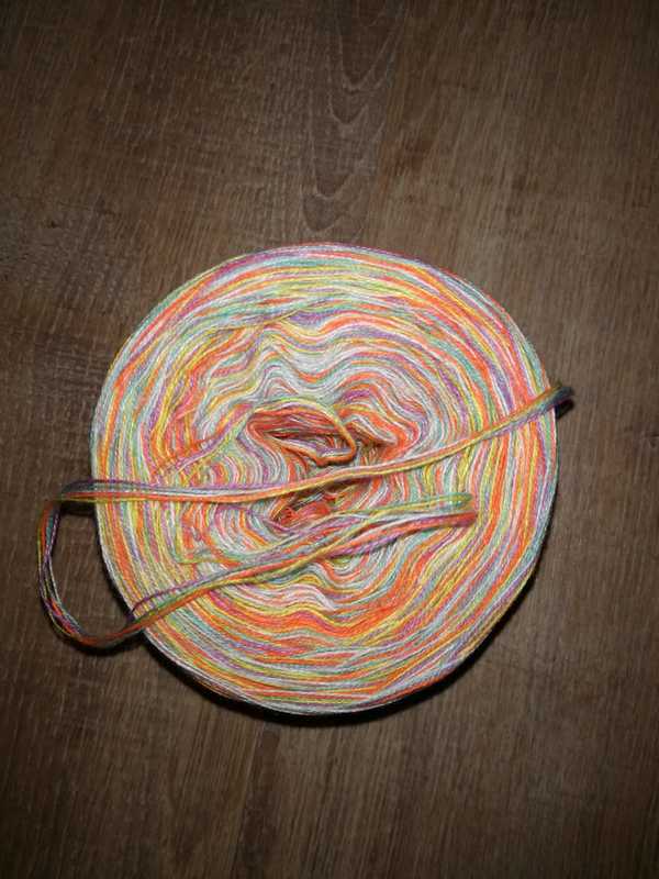 Garn: beliebig Ich empfehle: Bobbel / Verlaufsgarn, 800 - 1000 m, 4-fädig, Nadelstärke: 4,0