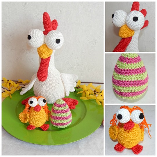 Diese lustige Osterdekoration besteht aus einem Huhn, einem Küken und einem Ei. Du kannst es als Dekoration, sowie als Spielzeug benutzen. Es ist einfach nachzuarbeiten, da die Anleitung Schritt-für Schritt beschrieben und mit vielen bunten Bildern versehen ist.