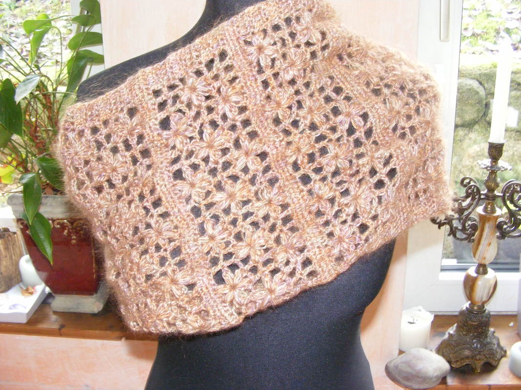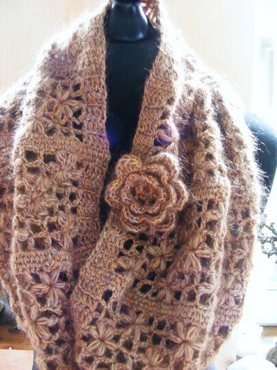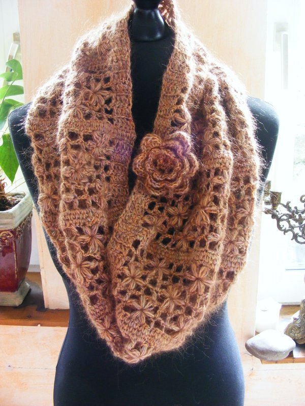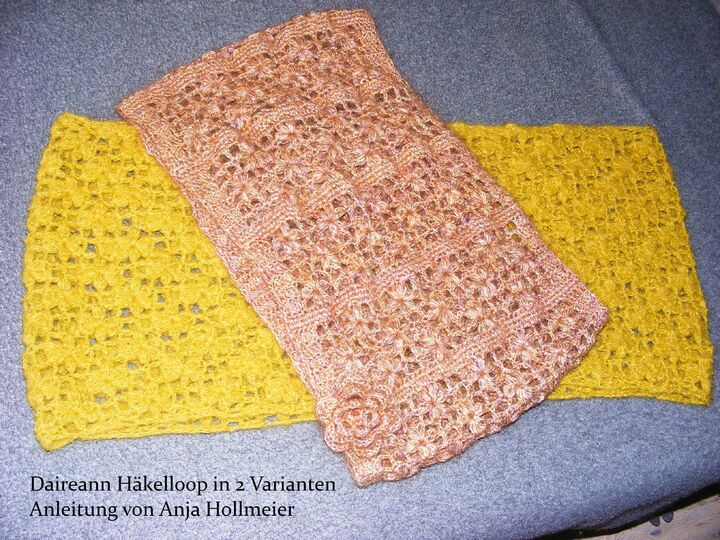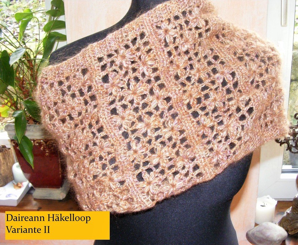 Daireann ist ein Häkelschal, der durch zusammenhäkeln oder –nähen auch als Loop getragen werden kann.