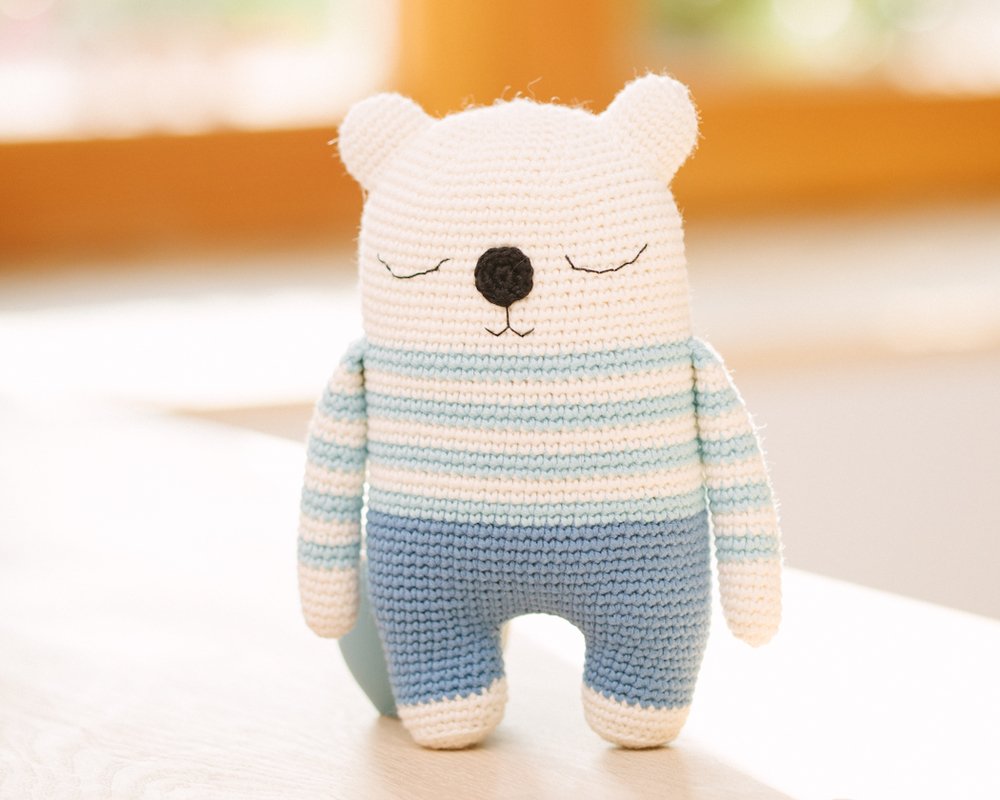 Wenn Du dasselbe Garn und dieselbe Häkelnadel verwendest wie ich, wird der Bär ca. 17 cm groß. Du kannst es größer oder kleiner machen indem du ein anderes Garn benutzt, passe aber dann die Häkelnadel und die Sicherheitsaugen entsprechend an.