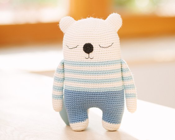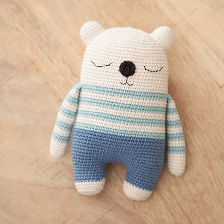 Die Streifen beim Bärchen werden einfach in Spiralen gearbeitet.