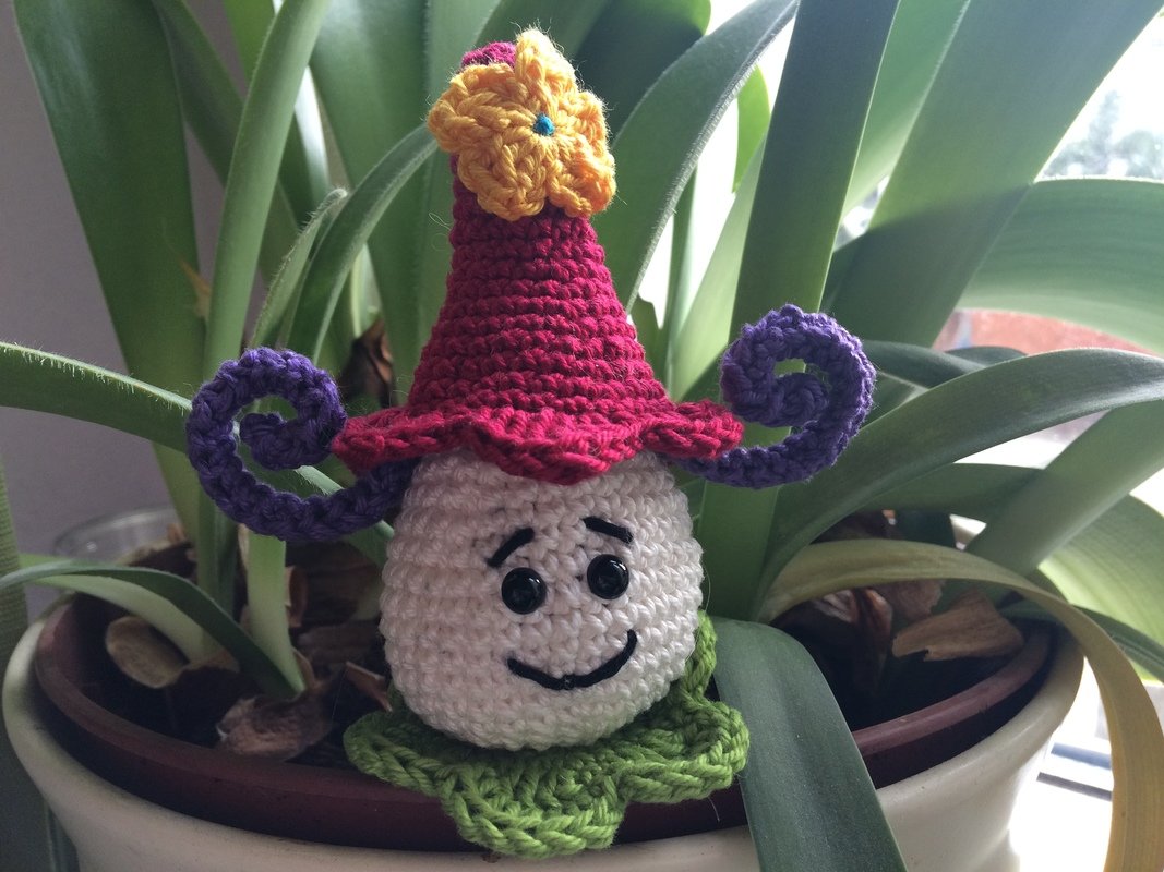 Kenntnisse: einen Fadenring häkeln, feste Maschen, Stäbchen, Doppelstäbchen, Luftmaschen, Kettmaschen