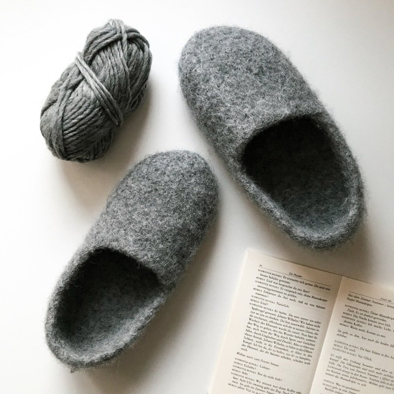 Schicke Filzpantoffeln für Männer - erst gestrickt, dann in der Waschmaschine gefilzt. Und ganz schnell gestrickt!