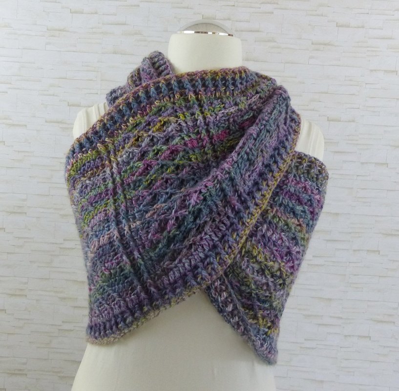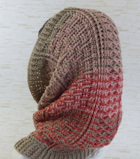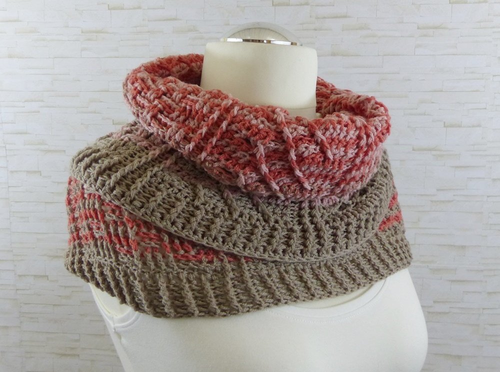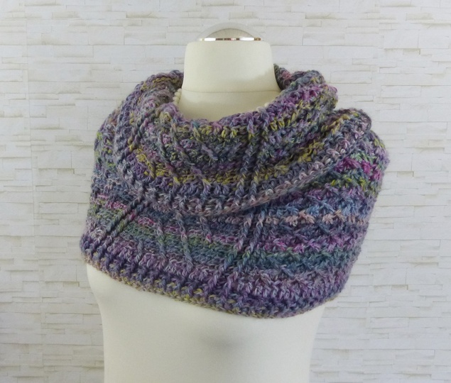 "TwoFaces 2.0" ist ein raffiniert gehäkeltes Schal/Loop, da das Muster auf beiden Seiten unterschiedlich ist. Daher hat es auch der Name "zwei Gesichter". Je nachdem wie der Loop getragen sind, sind auch beide Seiten des Musters sichtbar.
