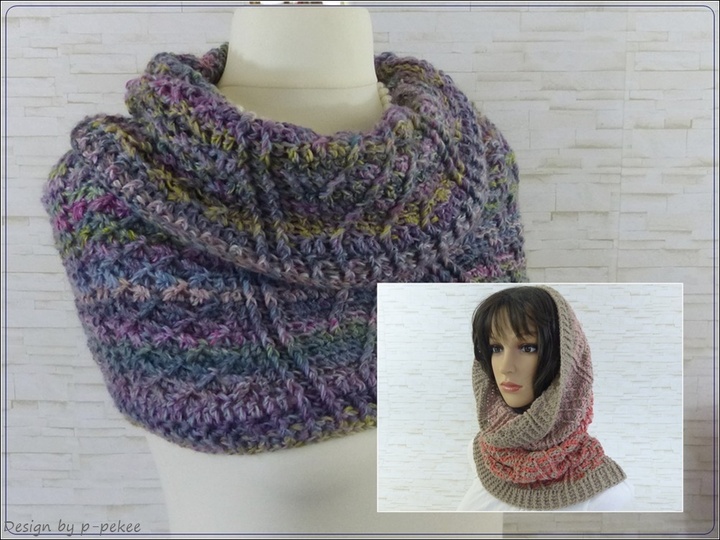 Das Loop kann in der Größe selbst bestimmt werden. Entweder er wird etwas größer gehäkelt, sodass er bequem 2x um den Hals passt. Oder eher etwas schmaler und höher, dann kann auch auch ideal als Scoodie getragen werden. Ob mit Farbverlaufswolle, Unifarben oder evtl. auch zweifarbig - der Loop ist immer ein Blickfang.