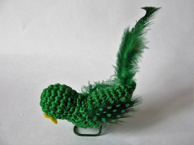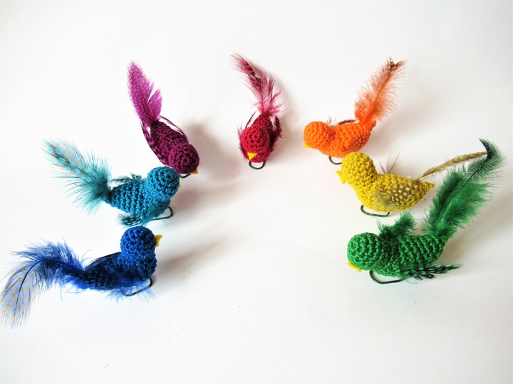 Die Vögel werden mit dem angegebenen Material (ohne Feder) etwa 6 cm groß.
