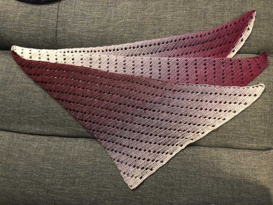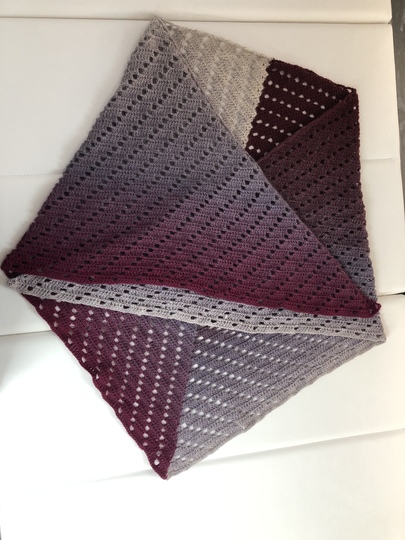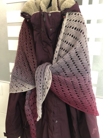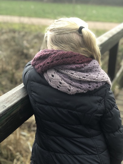 Das Tuch wird mit zwei Farbverlaufsgarnen (im Beispiel 2 x 600m LL) in einem Stück gehäkelt, und wird durch die entgegengesetzten Muster und Verlaufsrichtungen zum echten Hingucker. Durch seine Kompaktheit ist es ein leichtes und trotzdem kuscheliges Alltagstuch. Es wirkt aufgrund seiner unterschiedlichen Farb- und Musterentwicklung trotz Schlichtheit nicht langweilig. Viel Spaß beim Nachhäkeln!