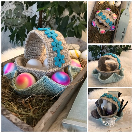 Die Anleitung ist mit vielen Bildern unterlegt und auf deutsch. Den Schwierigkeitsgrad würde ich LEICHT einstufen. Es wird geschlossenen Runden gehäkelt, dH: wir schliessen jede Runde mit einer Kettmasche und beginnen die neue Runde mit Anfangsluftmaschen. Der Korb kann in 2 Varianten gehäkelt werden - mit oder ohne Henkel.