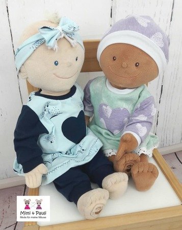 Jetzt tanzen die Puppen auf dem Tisch – mit Pixie und Pepe könnt ihr die kleinsten Familienmitglieder, quasi eure Enkel, wundervoll einkleiden! Dieses Puppenset kommt gleich mit diversen Kleidungsstücken für Puppen von 35 – 50 cm Größe daher, sodass sie für alle Jahreszeiten immer passend gekleidet sind: