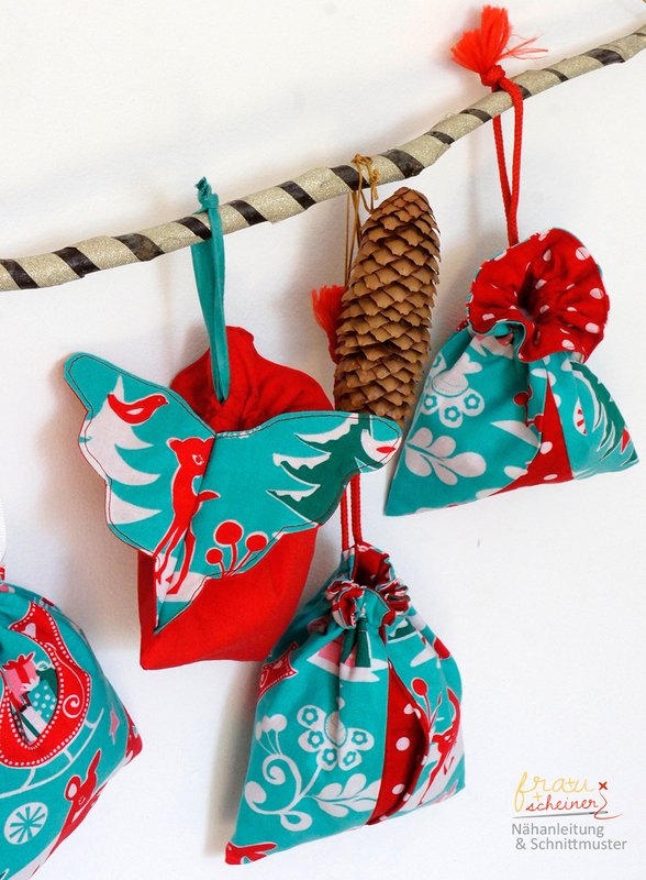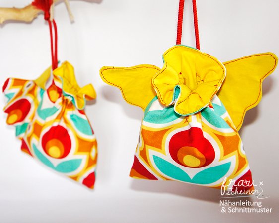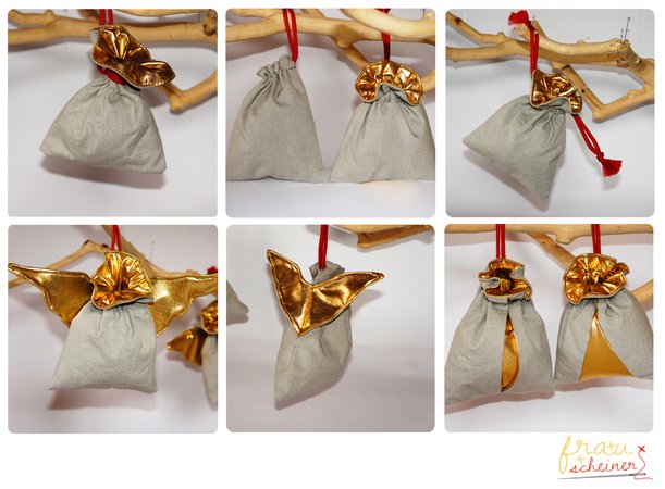Damit findest Du zwei Näh-Varianten für die Adventskalender Säckchen Engelsflügel: