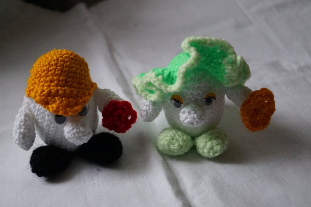 Ihr bekommt hier eine Beschreibung für 2 kleine Figuren, eine bezaubernde Deko an Ostern und im Frühjahr, beide Figuren sind ca. 9-10 cm hoch