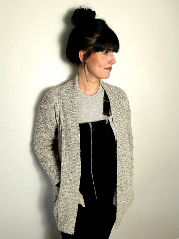 Der Cardigan wird in Teilen gestrickt und zusammengenäht.