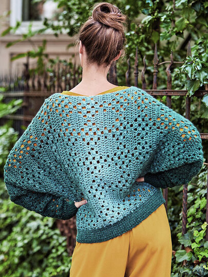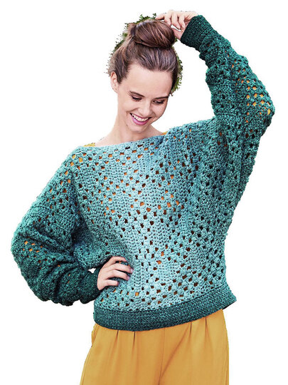Quer gehäkelter Pulli aus der kuscheligen Cloude.
