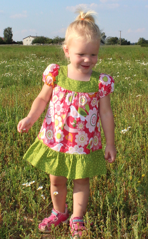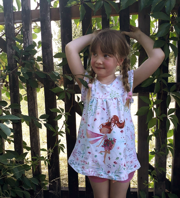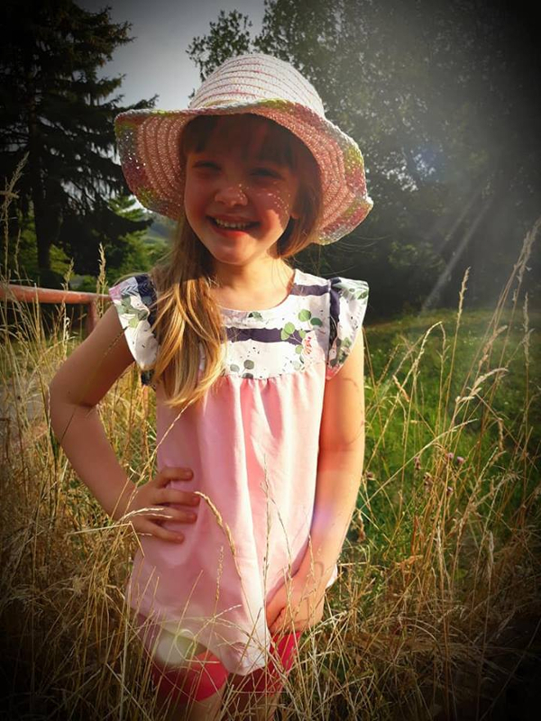 Ein Schnitt für alle Fälle: Als Bluse ist Areskia in den kleinsten Größen gerade so lang, dass sie nicht beim Krabbeln stört und wird in den größeren Größen im Verhältnis etwas länger. Als Kleid endet sie oberhalb der Knie. Runder oder eckiger Ausschnitt, Flügelärmel, Puffärmel – oder lieber ärmellos? Je nach Schnittteil entsteht immer wieder ein anderer Look. Ob reich betüddelt, im Mustermix oder ganz schlicht und dadurch edel – Areskia sieht am Ende immer bezaubernd aus.