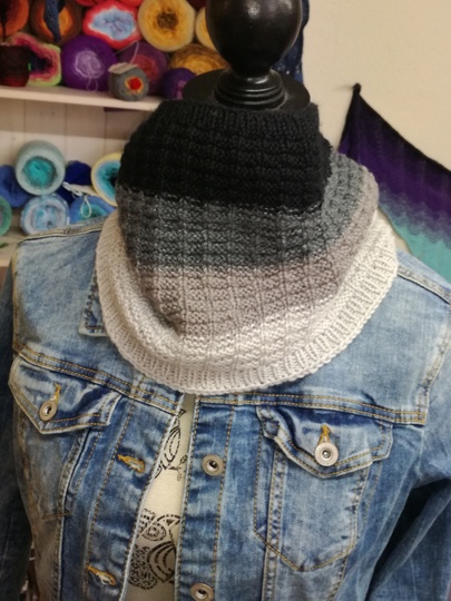 Stein auf Stein ist ein toller kleiner Schlupfschal der sich prima unter einer Jacke tragen läßt.