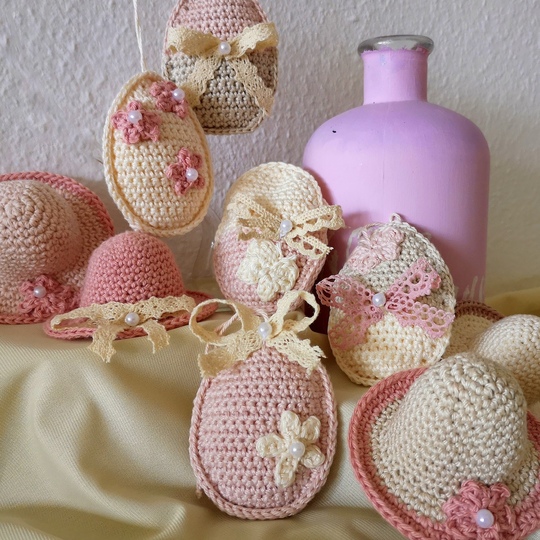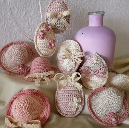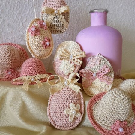 Diese hübschen Geschenkanhänger mit passenden Eierhütchen sind schnell gehäkelt und eignen sich prima zur Resteverwertung. Auch für kleine Geldgeschenke, Mitbringsel, Last-Minute Geschenk u.s.w. eignen sie sich wunderbar. Die Geschenkanhänger werden mit Baumwollgarn für Nadelstärke 2,5 bis 3,5, mit Farben deiner Wahl, gehäkelt.