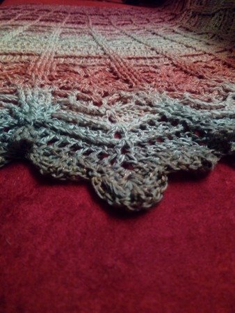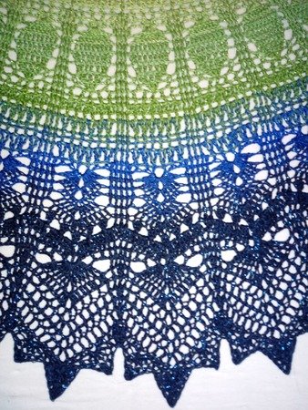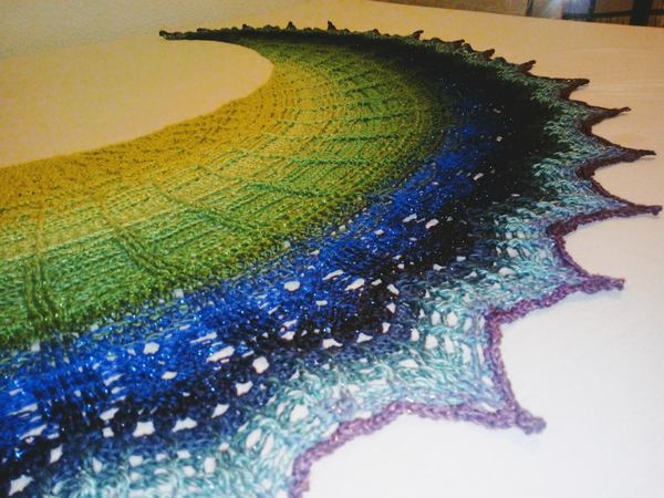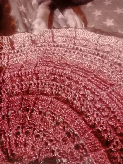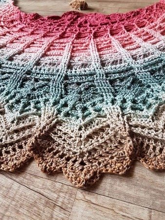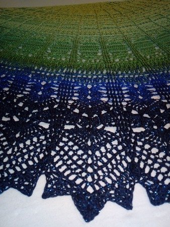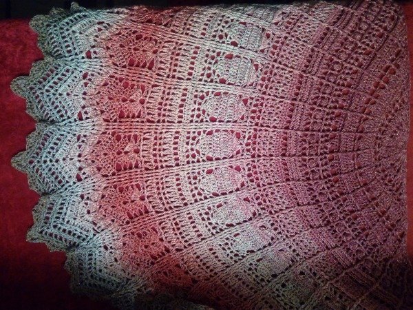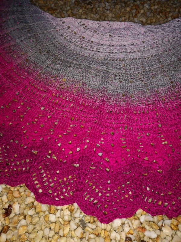 Ein wunderschönes halbrundes Schultertuch mit einem raffinierten Strahlenmuster.