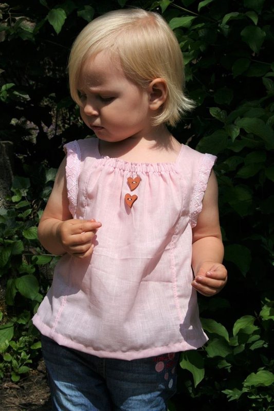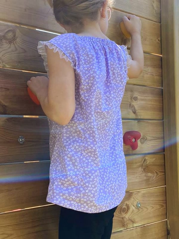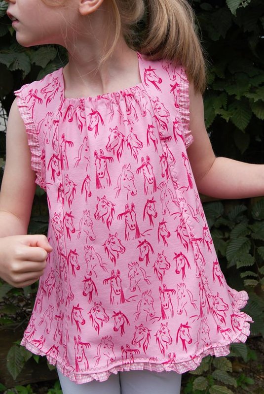 Als Material empfehle ich Webware wie normale bis leichte Baumwollstoffe, Batist, Blusenstoffe, dünne Popeline, Chambray, Viskose, Musselin oder Ähnliches. Wichtig ist dabei, dass die Stoffe nicht zu steif sind. Sie sollten schön weich fallen, damit sie nicht abstehen. Baumwolljersey mit genug Stand geht ebenfalls, damit lässt sich das Top besonders den ganz kleinen Kindern leichter an- und ausziehen. Für den Schnitt brauchst du außerdem nur wenig Stoff – perfekt zur Verwertung von Reststücken!