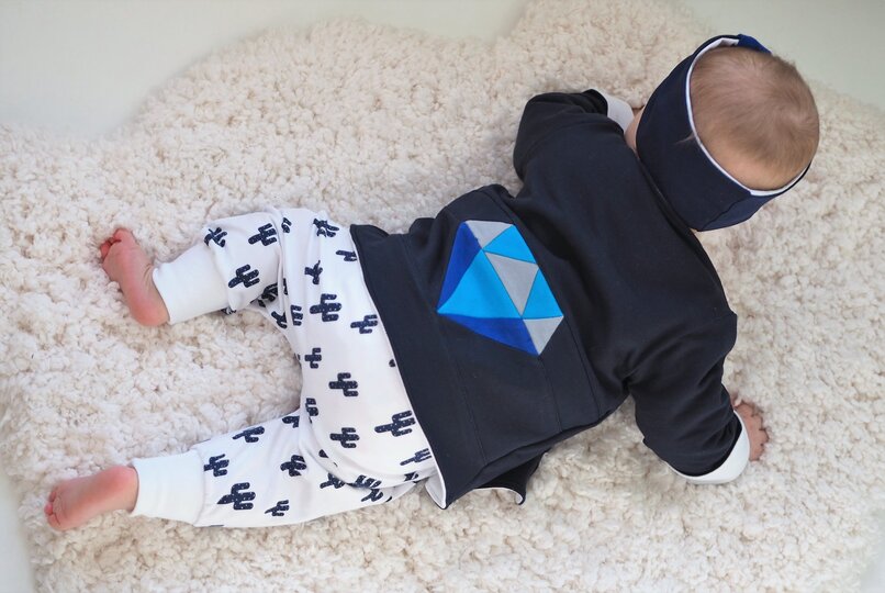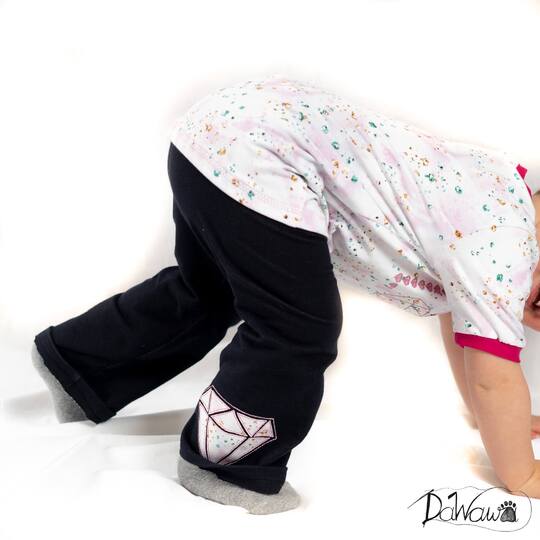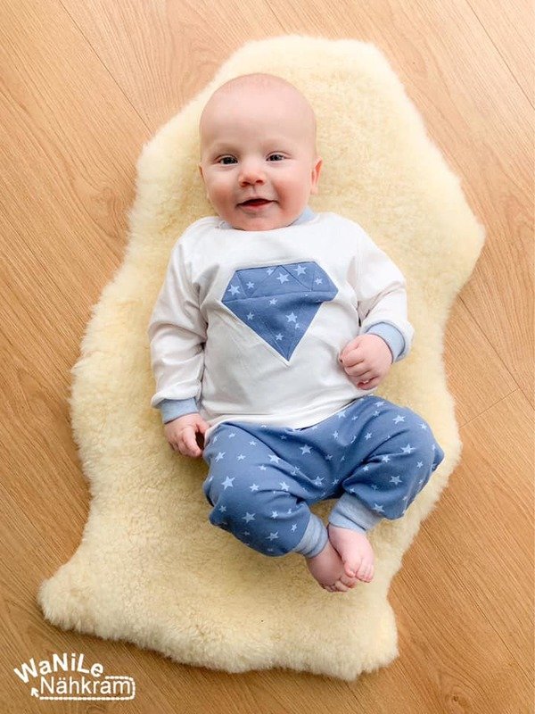 Hier in diesem eBook handelt es sich um die Diamond Baby Pants – einer lässigen Hose für Babys von Gr. 50 – 92. Nähbar ist sie er vorzugsweise aus Jersey- oder Nickistoffen – Sommersweat geht auch.