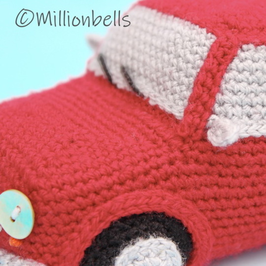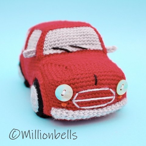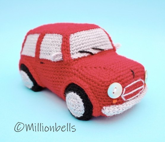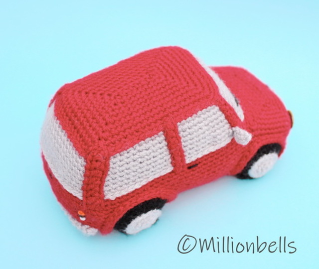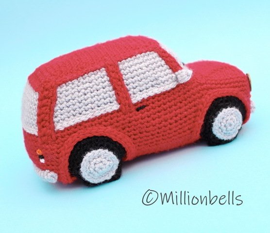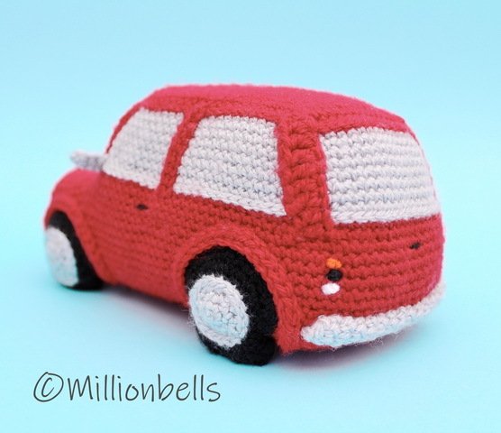 Hergestellt aus Acrylgarn und Häkelnadel 3,5 mm, wird der klassischen Mini ca. 18 cm lang, 9 cm hoch und 10 cm breit.