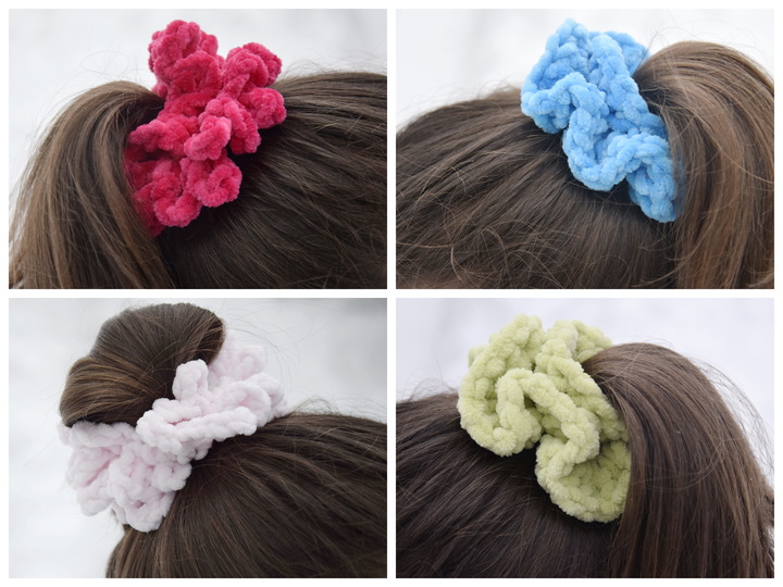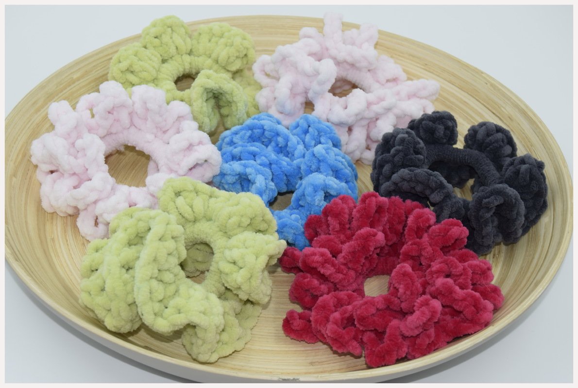 Wenn du lange Haare hast und dir modische Accessoires gefallen, dann sind diese samtigen Haargummis im Style der 90iger mit dem exotischen Namen SCRUCHIES perfekt für dich. Sie sind super schnell gehäkelt und ein schönes Geschenk für kleine und große Mädchen.
