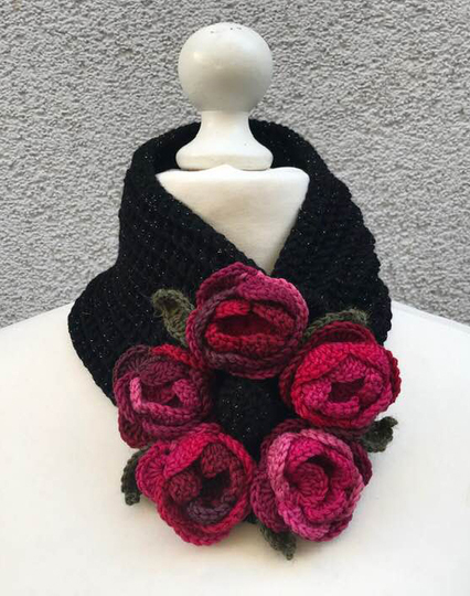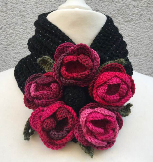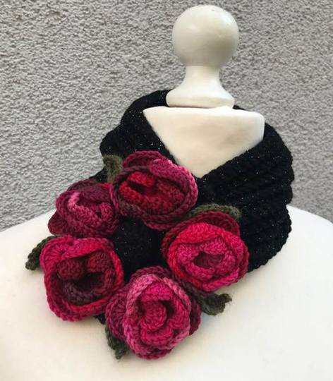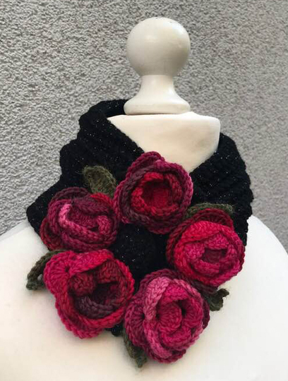 Halswärmer Rosenreigen kannst Du mit einem längeren Band/ Schalteil auch als GÜRTEL und Stirnband oder auch als Stola machen...da brauchst aber mehr Wolle!
