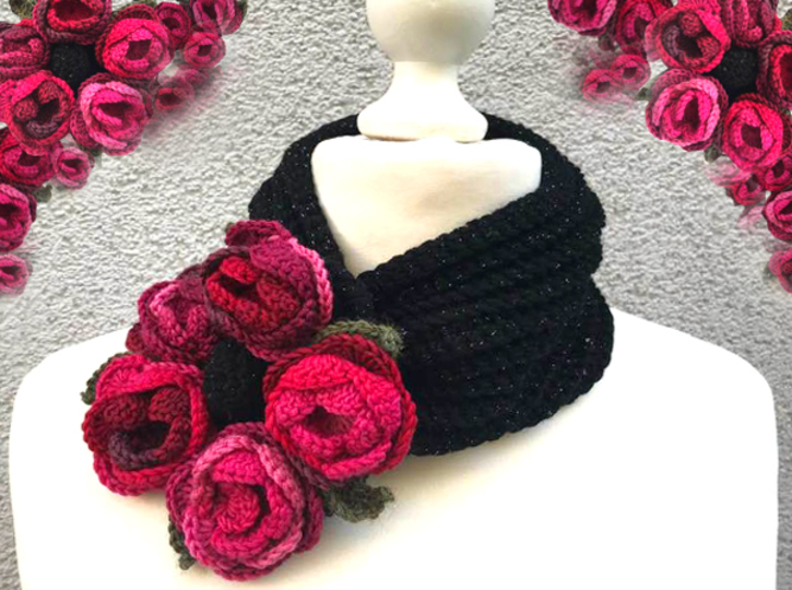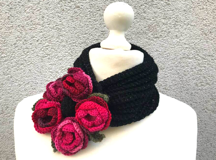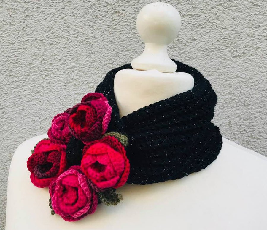 Der Halswärmer Rosenreigen ist ein kleiner Häkeltraum, denn er ist leicht nach zu machen und geht recht flott von der Hand..die Ideale Ergänzung zu märchenhafter Kleidung und auch zur Tracht