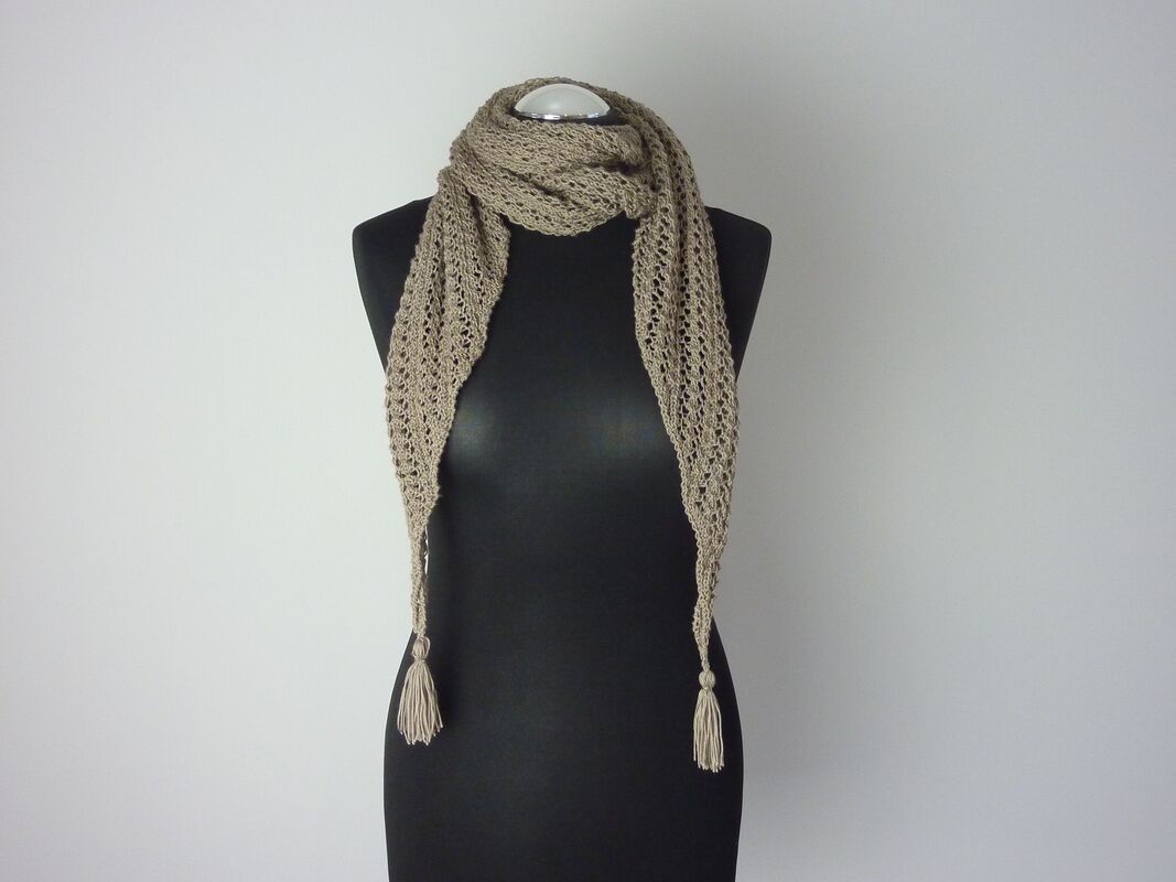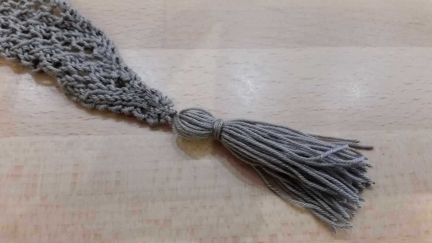 Abgerundet wird der Schal mit je einer Quaste an der Spitze.
