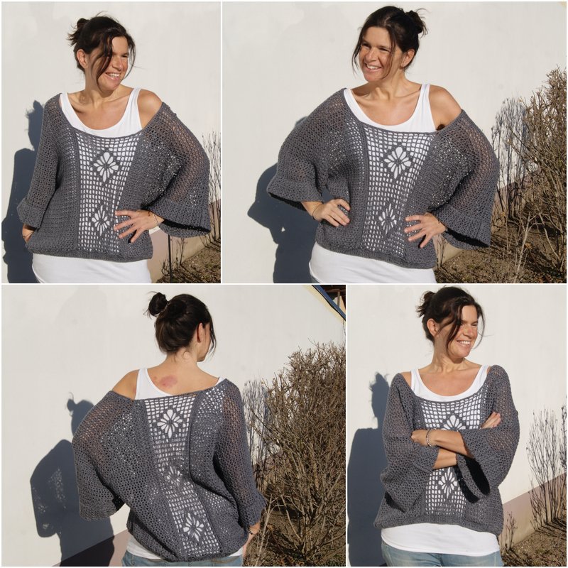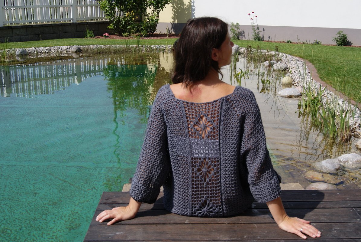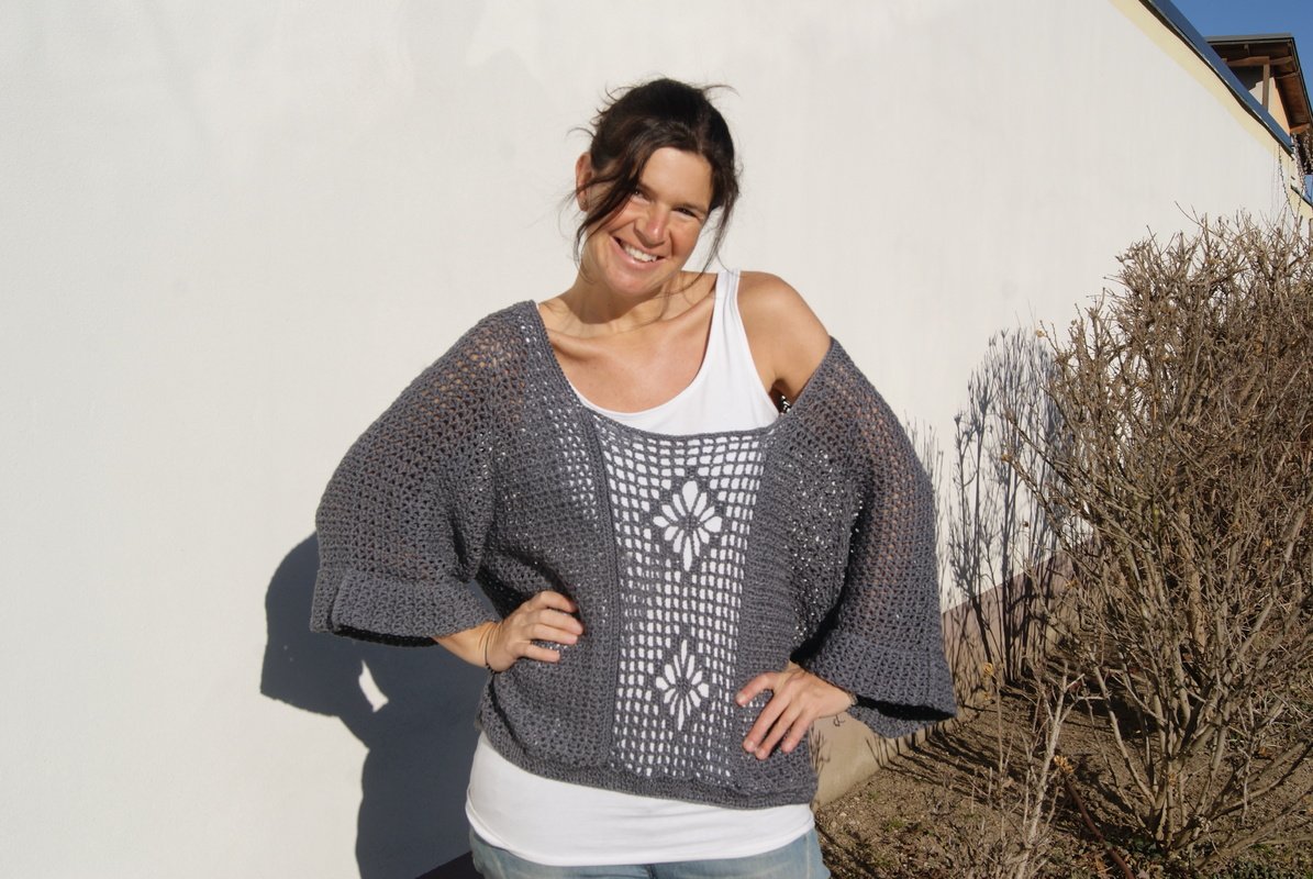 Du hast ein schönes Stück entworfen. Darf ich fragen, ob dieses Shirt in Runden gehäkelt wird, damit man es mit einem Farbverlaufbobbel auch häkeln könnte?