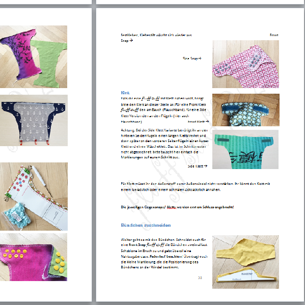 Ihr habt dabei die Auswahl zwischen der Ai2 und Ai3 Lösung und könnt euch für eine PUL-, Softies- oder Wollwanne entscheiden. fluff stuff kann als Front- oder Seitverschlusswindel genäht und mit Snaps oder Klett geschlossen werden. Jede einzelne dieser vielen Varianten ist genau beschrieben und mit Fotos dokumentiert. Ihr müsst euch nur entscheiden. ;-)