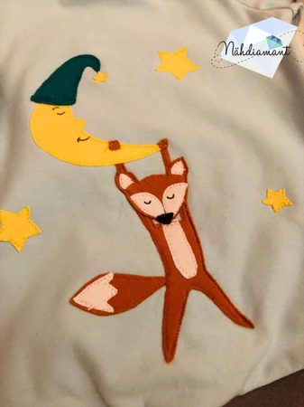 Das zweite Familienmitglied aus dem Fuxbau heißt "Ferdi Fox". Ferdi ist der kleine Bruder von Flora und er ist die Schlafmütze der Familie Fox und hängt (im wahrsten Sinne des Wortes ;) ) am liebsten mit Herrn Mond ab.
