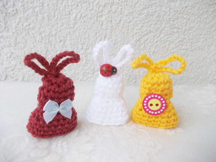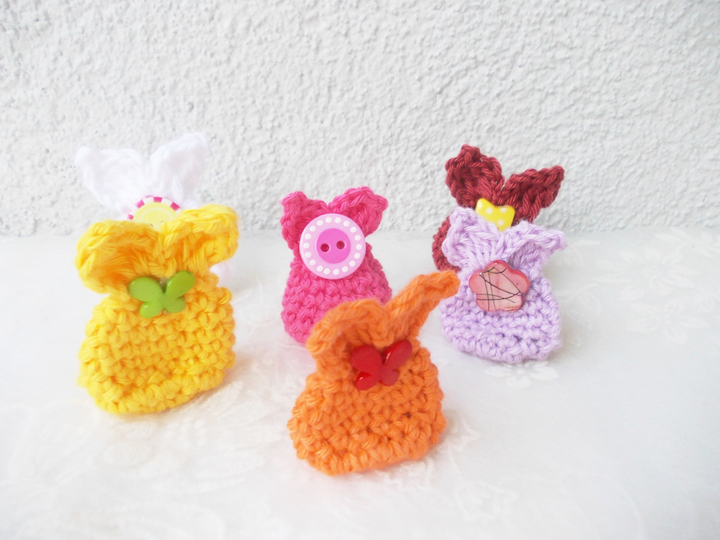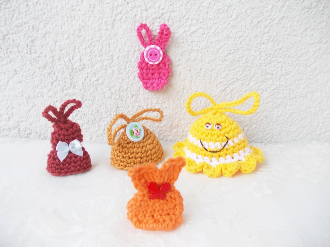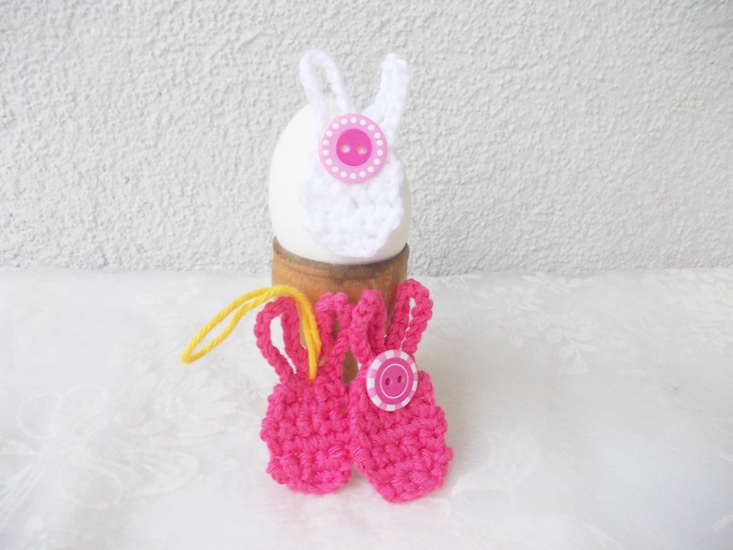 Möchte man größere Hasen haben, dann kann auch dickeres Garn verhäkelt werden, dann werden die Hasen größer, die Anleitung wird nicht verändert.